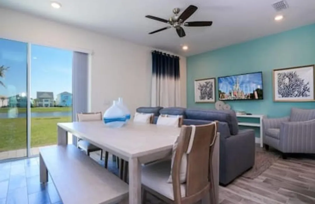 Hier werden Sie mit einem Blick auf den See bezaubert. Die Villa Brand New Private Oasis 4 Bedroom - Margaritaville verfügt über ein Badezimmer mit einer Badewanne, einer getrennten Toilette und einer Dusche. Es gibt einen Haartrockner, einen Wäschetrockner und Handtücher für den Komfort der Gäste.